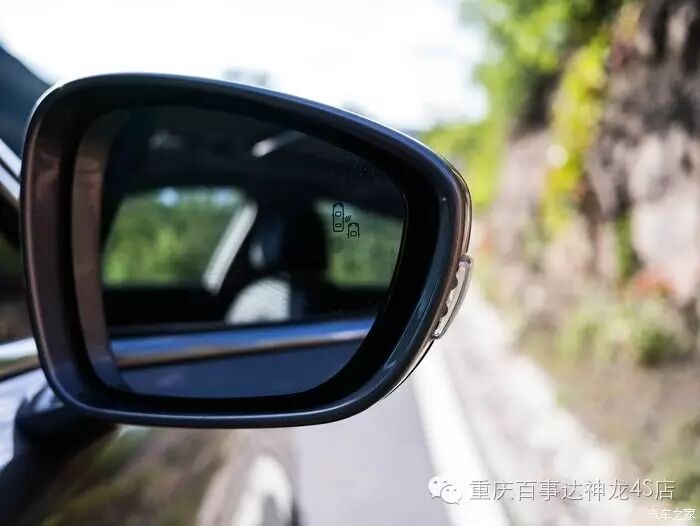 后视镜,仔细看上面有并线辅助功能,当侧后方盲区有车的时候,该提示灯会亮起,该功能对新手可能有点用,但是过于依赖也不靠谱
