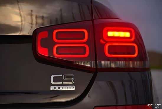 沿用雪铁龙Airspace概念车的尾灯设计是第三代C5尾部最大亮点。Quad-8矩阵式LED尾灯相比传统的卤素灯泡不仅亮度更好,在节能和使用寿命上的表现更佳。为行车安全提供可靠保障,同时也显现出法式设计的时尚元素。另外当尾灯点亮,中间的高亮度LED呈现出四个小方格图案,形似“88”字样,寓意“88大发”,也顺应了国人对财富追求的美好愿景。