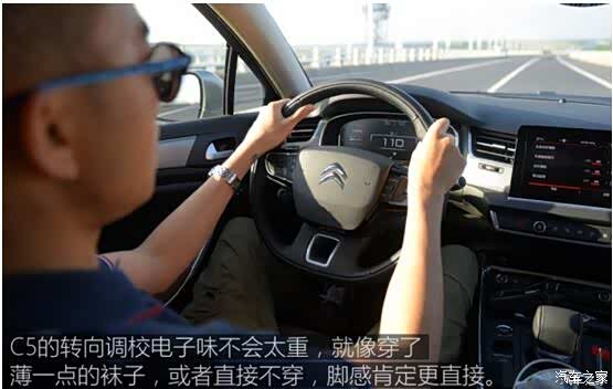 转向调校也是表现不错的地方之一。那好在哪里呢?C5的转向调校相对偏沉一些,这个比较符合我的个人喜好,而且转向角度加大或者车速加快时会变沉,手里握着方向盘更有分量,让人感觉更真实、更直接,电子味不重,就像赤足穿鞋一样。
