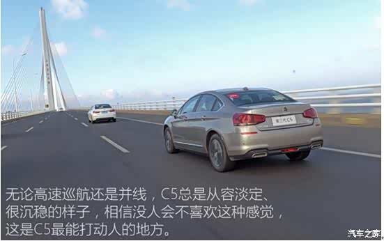 C5无论在低速还是高速行驶(受路况限制,今天最快只开到100km/h)、直线巡航或者并线动作,都表现得非常沉稳,你握着方向盘会觉得心理很踏实。从行驶性能的角度看,C5的底盘调校向来都能让人满意。