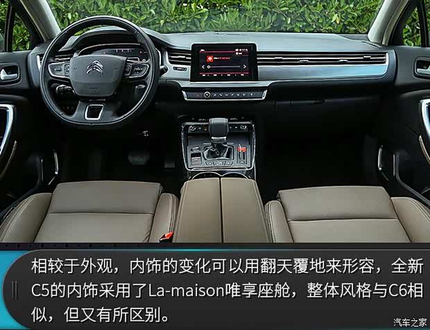 相较于外观上的变化,内饰的变化更加彻底,第三代C5的内饰采用了La-maison唯享座舱,基于雪铁龙CAC舒适理念设计,动感悬浮的设计风格,贯穿式的出风口设计、悬浮式液晶屏等都很符合当下的流行趋势。整体而言相当的惊艳,不得不感叹法国人在设计方面的造诣。