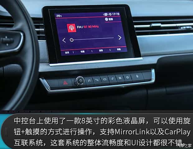 中控台上使用了一款8英寸的彩色液晶屏,可以使用旋钮 触摸的方式进行操作,支持MirrorLink以及CarPlay互联系统,这套系统的整体流畅度和UI设计都很不错,使用一段时间之后会发现这套系统相当的顺手,值得一提的是内部导航由高德提供,可以联网显示实时路况,并且可以与手机上的高德地图进行互联。