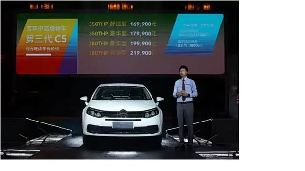 新车售价一向是消费者的关注重点,不过,第三代C5的价格出来后,满意的声音居多。新车共推出4款车型,售价16.99—21.99万元,同时送全额购置税和3年5次保养。减免下来,新C5的入手价控制在15—20万元左右。作为一款B级车,和天籁、帕 萨特、凯 美瑞等对手比起来,第三代C5这个价格有明显优势。