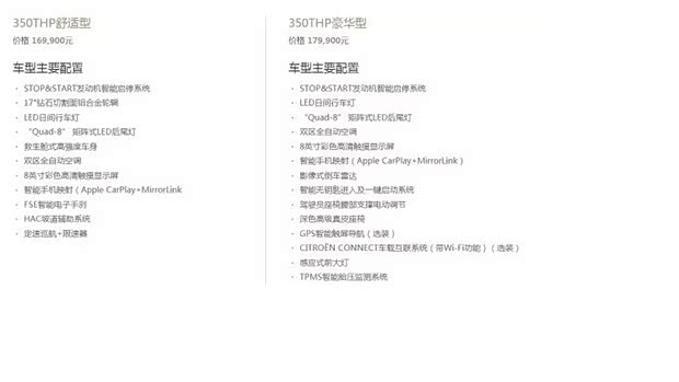 结合配置来看,消费者应该更能感受到雪铁龙这次的诚意。最低配的1.6T自动舒适型,已经有ESP、定速巡航、发动机启停、上坡辅助、真皮多功能方向盘、LED日间行车灯、后视镜加热等配置。相对于同级别车型来说,C5全系标配的诚意还是很足的。
