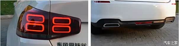 全新C5外观采用了雪铁龙最新家族式设计,前脸比现款运动多了,尤其是酷似C6的LED日间行车灯辨识度很高。尾部最抓眼球的就是4个8尾灯,尤其是晚上,远看就像背着4个大钱袋子,咔咔就是发!双边双出的镀铬尾喉只有装饰作用,真正的排气口隐藏在保险杠里面。