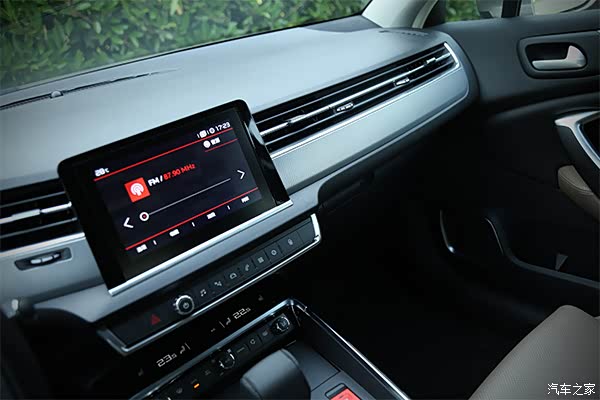 相比老款C5,一眼看下去,新C5就的整体风格年轻了许多。但再进到车内,与老C5的反差比车外还大。“La-Maison”是雪铁龙为C5内饰设计起的名字,意为“家”。整体风格同样比较偏向C6,不过最大的区别在于没有了C6中控台上奢华的大面积真皮包裹,取而代之的是首次使用的一体贯穿式空调出风口,加上悬浮式中控屏,更加实用居家。