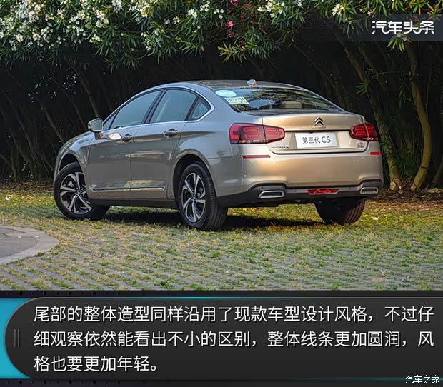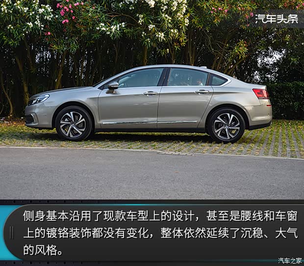 侧面看,全新C5依然可以看到现款车型的设计风格,即使是车窗上的镀铬条也和现款车型如出一辙。不过车长与车高分别比现款车型增加20mm和22mm,达到了长4825mm和宽1480mm的数据表现,轴距保持不变,依旧为2815mm。