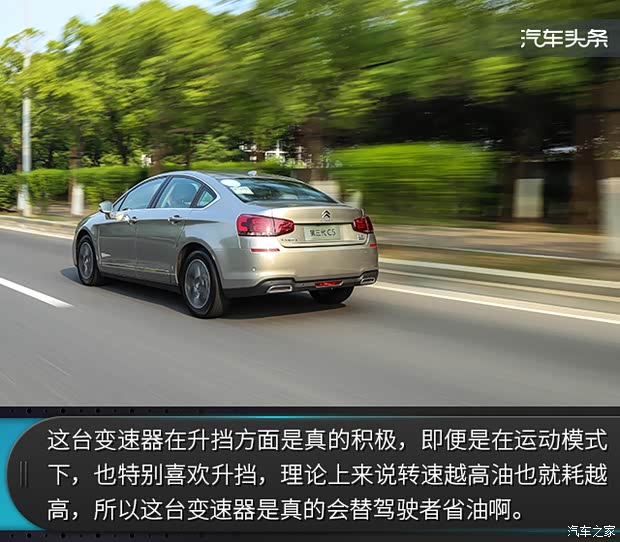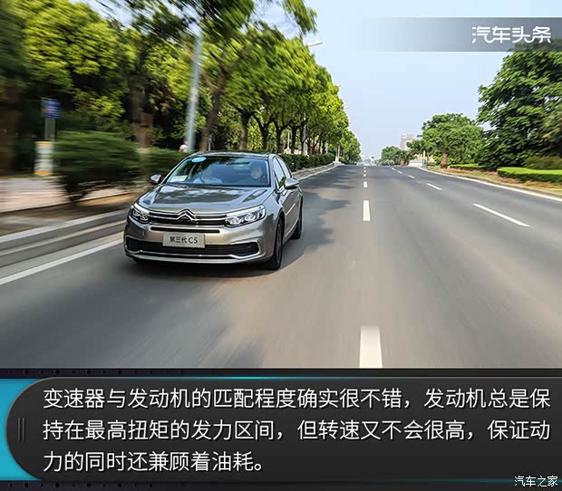 在动力方面,全新C5依然使用了1.6THP和1.8THP两款发动机,我们所试驾的车型使用1.8THP发动机,这款发动机我们已经相当熟悉了,最大功率150kW(204Ps)/5500rpm,峰值扭矩280Nm/1400-4000rpm。与发动机相匹配的是一台6速手自一体变速器。