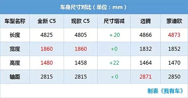 全新C5的轴距(2815mm)和车身宽度(1860mm)与现款保持一致,只是长和高分别增加了20mm、22mm,虽然与竞品相比没什么优势,不过坐在后排时差距并不明显。唯 一不足的是全新C5全系都没有配备全景天窗,多耽误看星星撩妹啊。