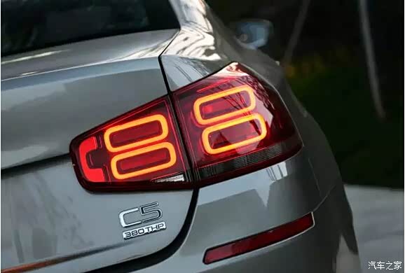 新C5的外观识别度很高。前脸是具有家族特征的贯穿式设计,鹰翼矩阵式的全LED大灯和带有雪铁龙徽标的前格栅连成一线。车尾是每边一个四矩形尾灯,合在一起就是“8888”,非常吉利。