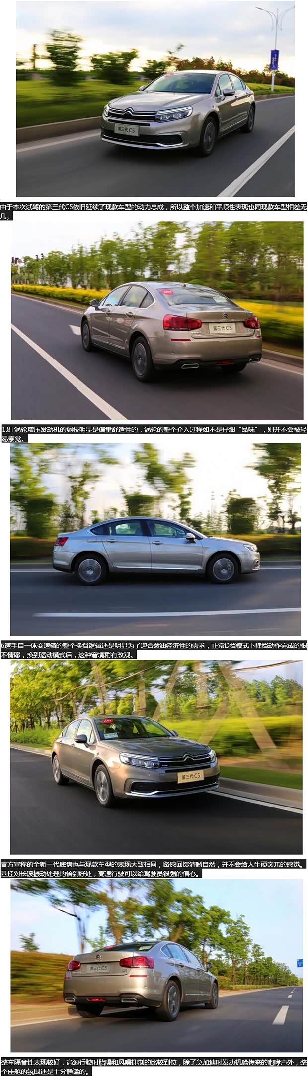 从动力参数上看,第三代C5的动力在涡轮增压发动机阵营中谈不上突出,但相比自然吸气发动机来说还是具备一定的优势的,值得一提的是,第三代C5所搭载的1.6T/1.8T两款发动机均为PSA集团非常经典的发动机,配合传统的6速手自一体变速箱,长期使用的稳定性是值得肯定的。