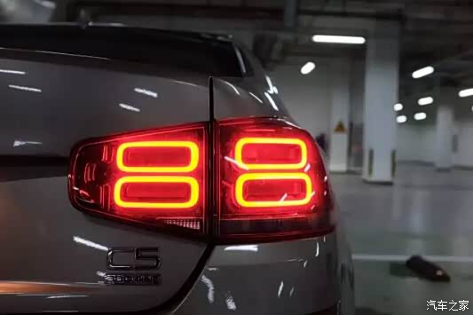 而第三代C5的尾灯设计绝 对是相当精妙的地方——每边四个圆角矩形组成的四个“8”充满了神秘感和寓意感。东风雪铁龙解释说,这个设计被称为Quad-8,灵感大致来源于法国奢侈品爱马仕相似的圆圈图案,也和中国人所喜爱的“8”这个数字相近。事实上,从尾部的设计可以看出,PSA设计师此次在雪铁龙第三代C5上面都是采用简约路线,车灯的外形已经回归到最简单的构型,灯组内部也是简单的圆角矩形,虽然并没有增加额外的镀铬条,但远远看去也极具辨识度。