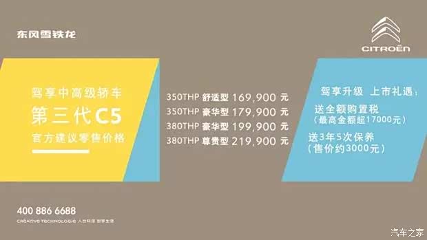 作为Young Citroën全新品牌形象发布后的第一款上市车型,主打驾享舒适的第三代C5将与主打越享舒适的C6形成“双子星”组合,共同完善东风雪铁龙在中高级车市场的布局。