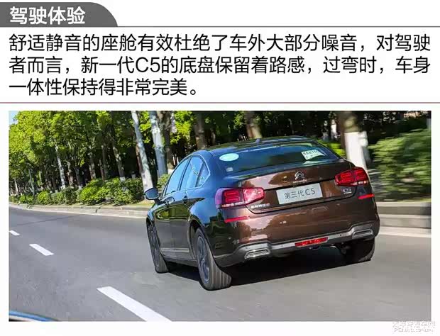 或者厂家更希望大家去关注新一代C5的底盘表现,当C5行驶在一些坑洼路面,它会过滤得比较清脆,弹跳幅度不会很大,但又不是那种软绵绵的感觉,会带一点韧性在里面。曾经尝试着带点速度去通过坡度不高的减速带,新一代C5依然表现得行云流水地行驶过去。