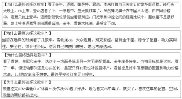 此外,每款车的用户群体都有其差异化的特征,全新C6的用户,想来应是具有独特个性和品位的人群,他们为什么会选择全新C6?(还是在新车阶段,优惠较少的情况下),或者说全新C6究竟靠什么打动了他们,这个问题也值得探寻。