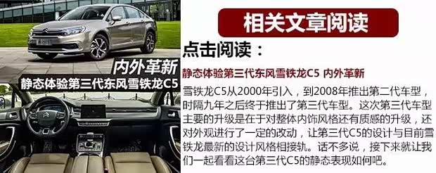 编辑点评:东风雪铁龙C5此次进化可以说在外观与内饰设计方面做到了尽可能的完善,的确在这一时期雪铁龙C5也需要作出一次进化,从表现上来看,这次进化还是能够给人耳目一新的感觉,从视觉、使用便利度以及舒适度上都给人留下很好的印象。与此同时,该车还保持了此前较高的行驶品质,在动力没有改变的同时,通过对底盘调教与隔音升级还是做到了舒适度的再次进化。全新雪铁龙C5未来发布之后,它将和更高级别的C6做很好的互补,一高一低抢占更多的市场份额。