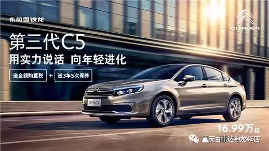 购第三代C5享购置税全免,最高可免17000元!再送价值3000元的三年/五次保养!置换享6000元补贴或10万两年0利息。