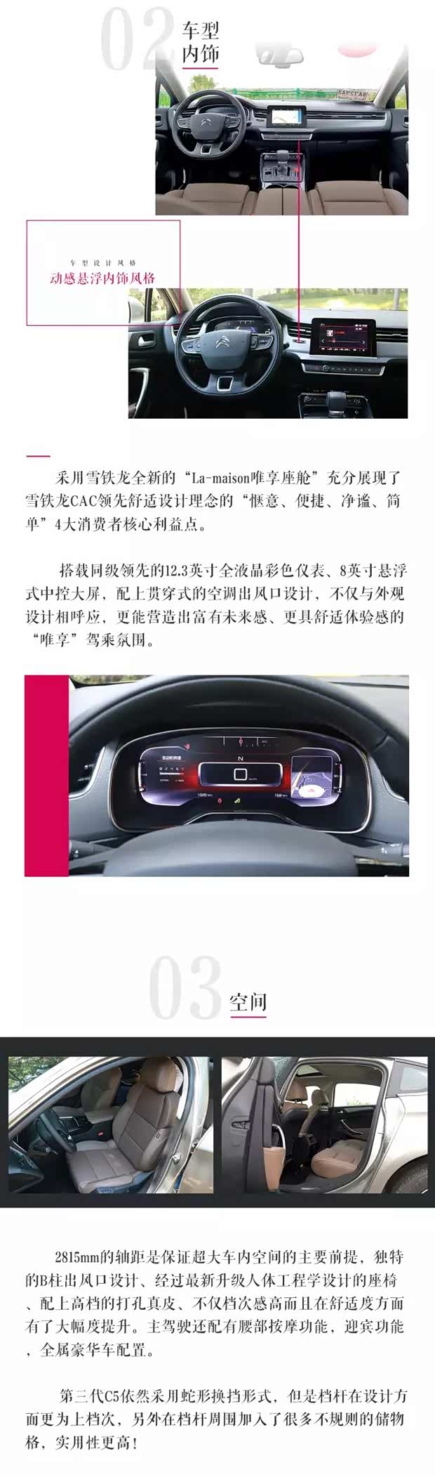 对于中国购车消费者而言,在选车方面都是有一个共通点,那就是在自己有限的预算当中,务求选到一辆面面俱到的爱车,不仅要外观大气、内饰设计还得高档、空间必须大、座椅必须舒服、最关键的是配置一定要够高。然而市面上真的有这样面面俱到的车型?答案当然是肯定的,或许你可以关注一下今天我们的主角——雪铁龙第三代C5。