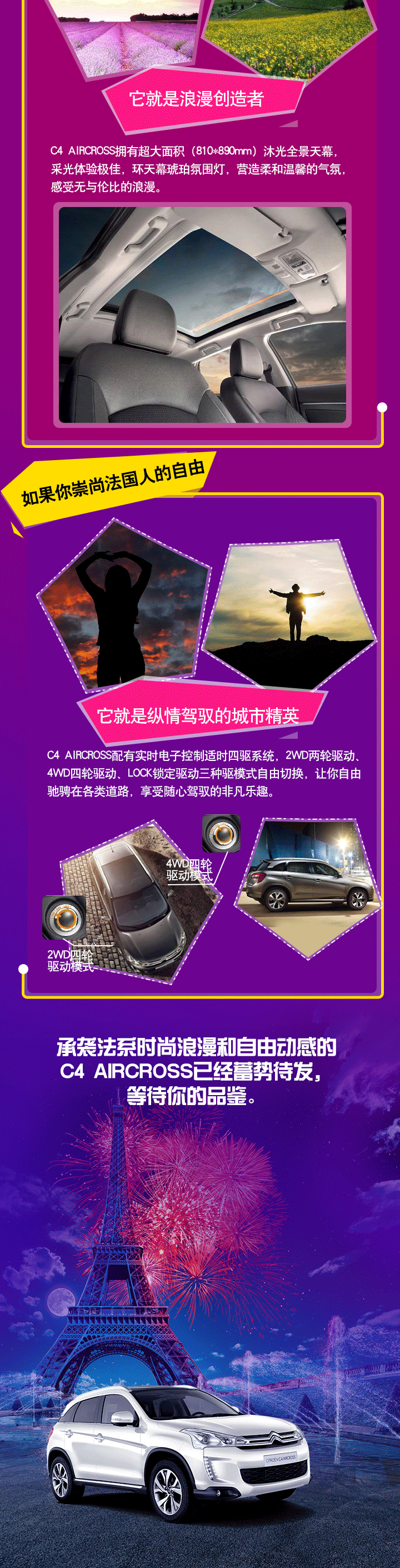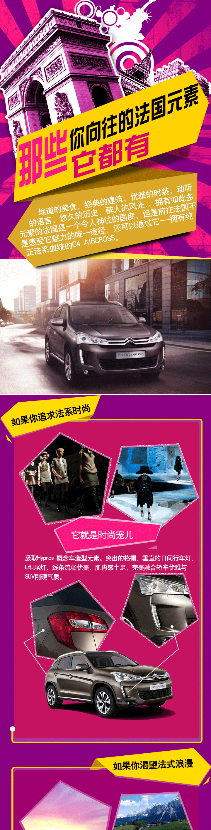 “地道的美食,经典的建筑,优雅的时装,动听的语言,悠久的历史,醉人的风光...拥有如此多元素的法国是一个令人神往的国度,但是前往法国不是感受它魅力的唯一途径,还可以通过它——拥有纯正法式血统的C4 AIRCROSS。