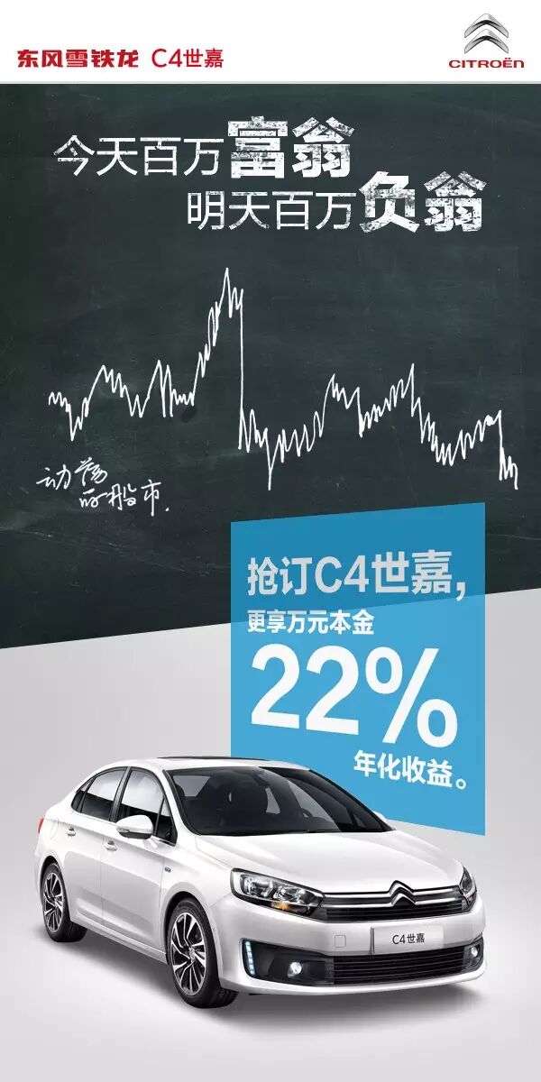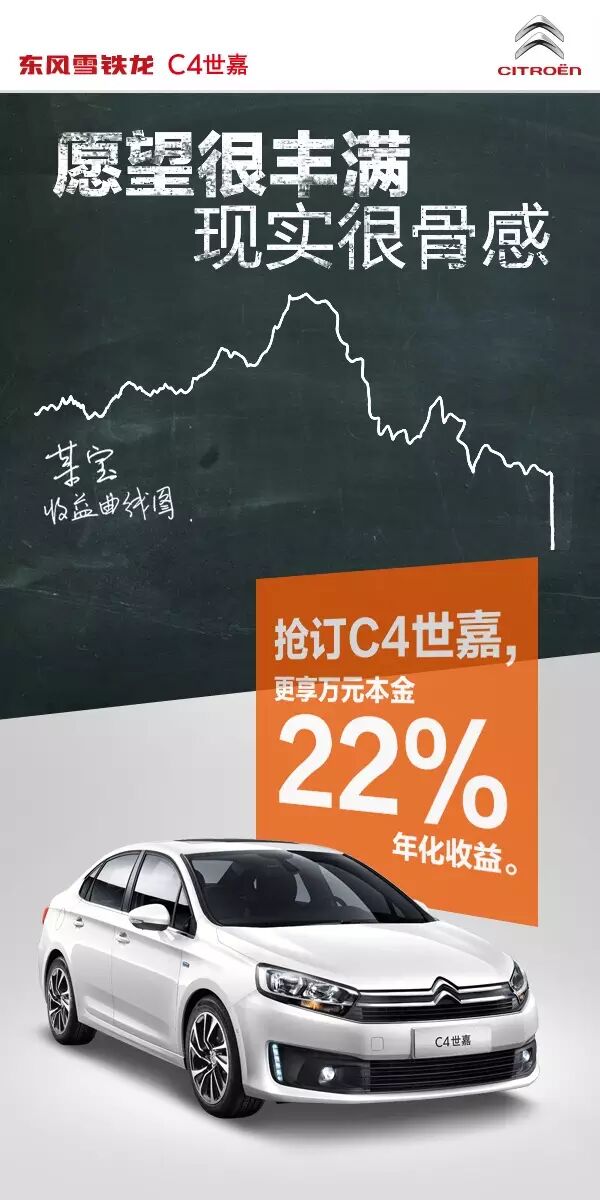 眼光好,很重要。万元本金22%年化收益,不失为一个准确的决定。面对某宝日渐下降的年收益额,精明的人总是选择收益高的。上天猫·东风雪铁龙旗舰店,抢C4世嘉,预付99元,即享万元本金22%年化收益。超值收益,抢到了就赚了!