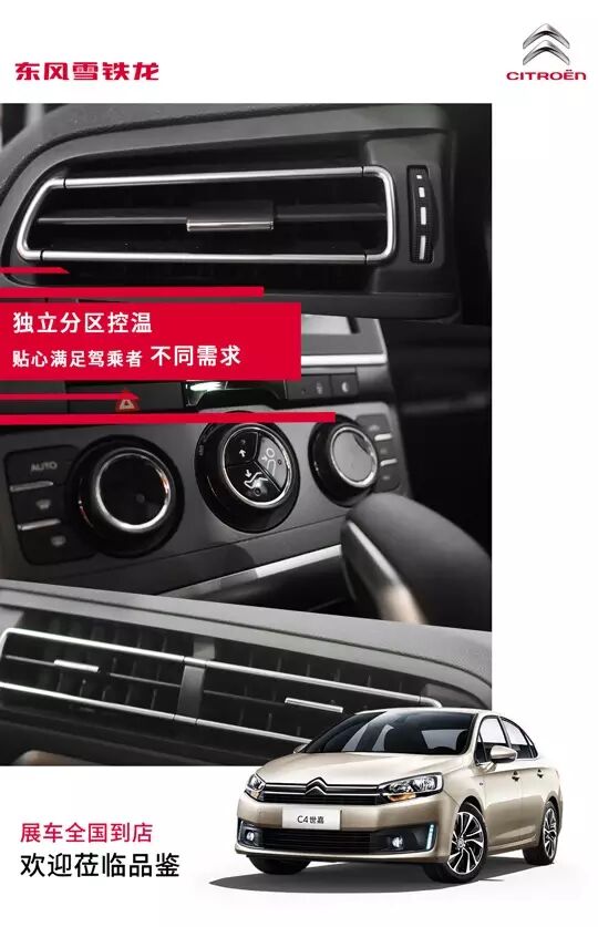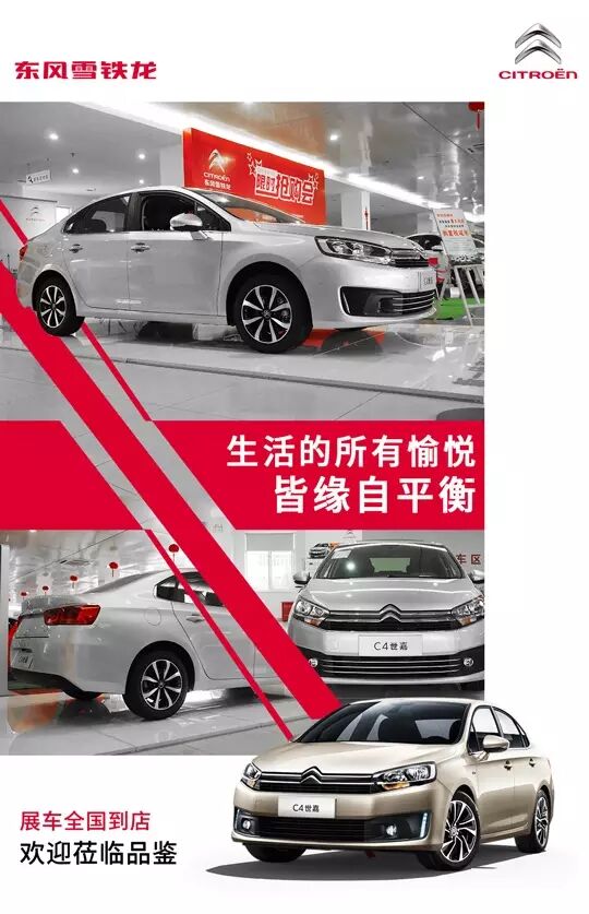 东风雪铁龙C4世嘉即将于本月上市,“展车全国到店,欢迎莅临品鉴”。主题清晰明确,用简洁直接的语句传达核心信息。副页标题“生活的所有愉悦,皆缘自平衡”,自然生动传达欧式新平衡主义设计理念,展现C4世嘉带来的生活美学与现代设计。