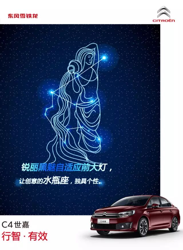 C4世嘉一辆车满足了星座们对汽车的所有幻想,集合了十二星座不同的优点与一车,十二星座想要的,在C4世嘉这里都有!