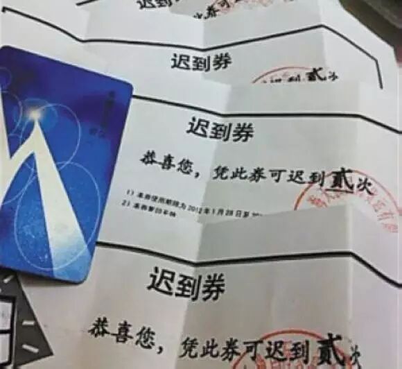凭此券可迟到两次”的“迟到券”