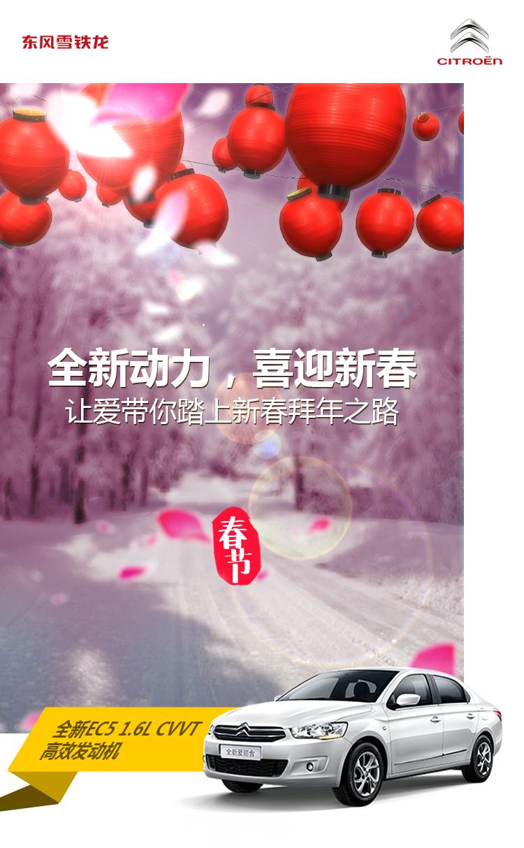 你用满满的正能量迎接新年,全新爱丽舍2016款用全新EC5 1.6L CVVT高效发动机为你助力!动力更强,油耗更低,2016全力出发!